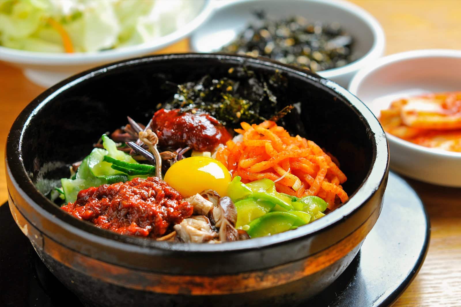 Warm rice, beef or chicken, raw egg, mixed veggies, soy sauce, and a dab of chili pepper paste are the main ingredients of the most popular type of bibimbap. Hoedeopbap, a variant of classic Korean mixed rice meal that is perfect for seafood enthusiasts, swaps the meat for raw seafood like salmon, tuna, or octopus.